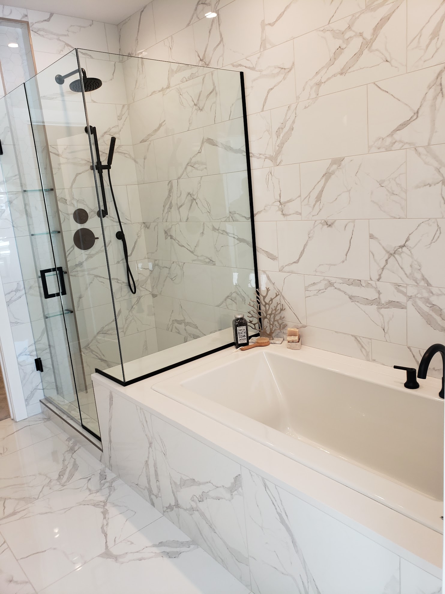 Scope: Design consultation, demolition, plumbing, electrical, tile installation, vanity and fixture installation, finishing