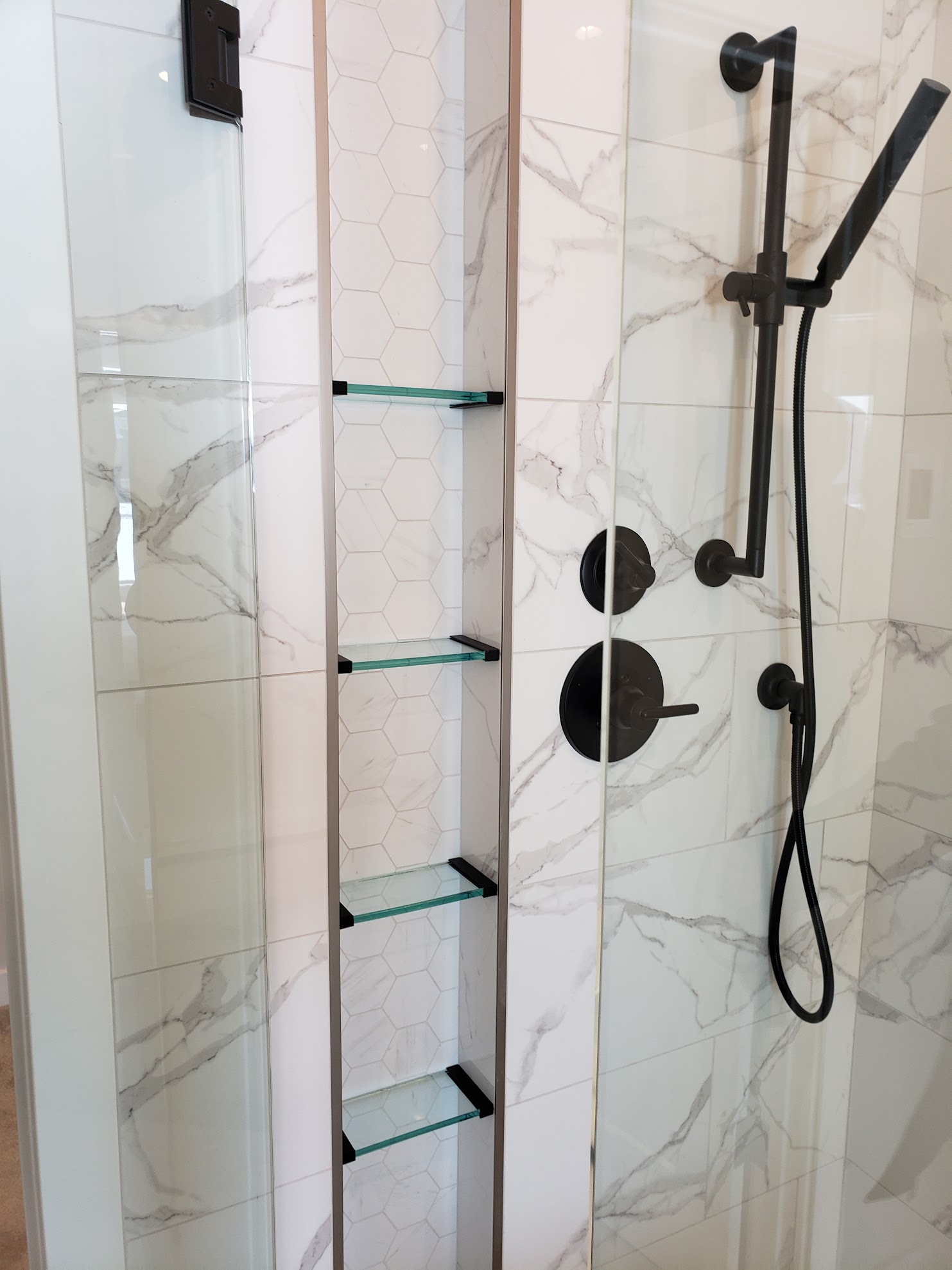 Prime Ridge redesigned and completed a bathroom remodel that balanced functionality, durability, and modern design, delivering the project efficiently and to code. The renovation included upgraded plumbing fixtures, new tile installation, improved lighting, and a custom vanity to enhance storage and usability.