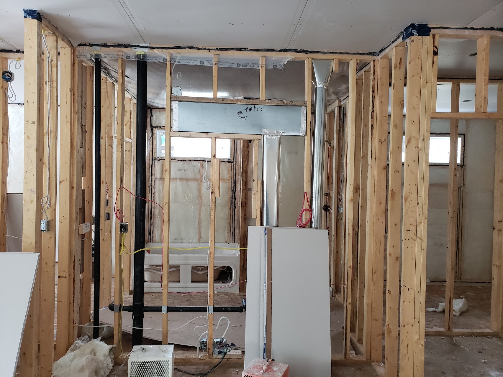 For legal suites, this may include panel upgrades, separate circuits, plumbing rough-ins, bathroom/kitchen installations, and ventilation modifications to meet safety requirements.